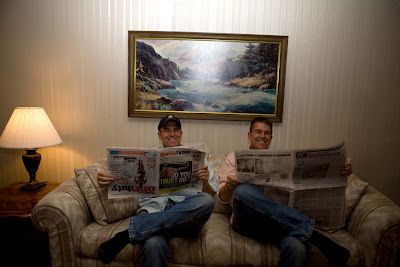I finished mowing the lawn today and sat down on the porch for one of three 32 ounce cups of water that I try to guzzle every day. I tried to get the lawn mowed yesterday but by the time I headed to the shed to fire up the lawn mower it was pouring rain. Luckliy I beat the rain today. I like yard work but I like having boys around to help more than I like doing it myself. For the better part of the past 15 years I've had Michael or Bret, or both, around to manage lawn mowing responsiblities. They both started mowing at about 8 years old. Since Bret is busy in Taiwan and Michael is hanging out in Santa Barbara I'm now the lawn dude.Like I said, I finished mowing and sat down on the porch and realized how good the lawn looks. Maybe it was the cool wet spring or the warm late summer, or neither. Maybe it's the fertilizer from IFA, whatever, it looks as good now as it has for a long time. I thought Michael and Bret would be pleased. While I was lost in that thought I realized that the dead spot of grass that traditionally has been right below our front porch has nearly filled in.
